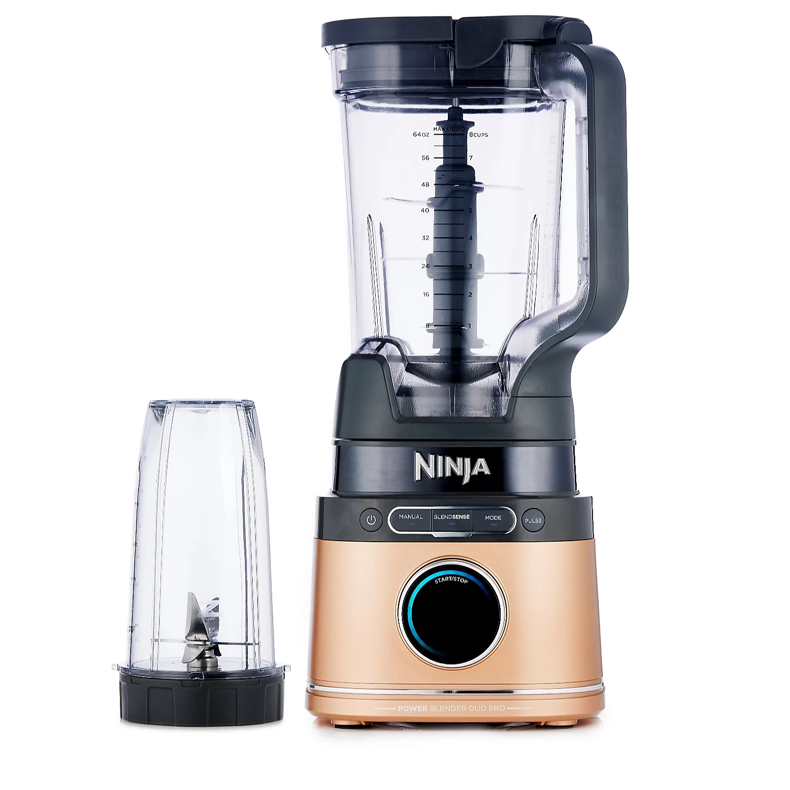 Mixez intelligemment avec le Ninja Detect Power Blender Pro. Ce blender de 1200W comprend un grand pichet de 2,1 L pour soupes, sauces et cocktails glacés, ainsi qu'un gobelet individuel de 700 ml pour des smoothies à emporter. La technologie BladeSense™ détecte les ingrédients frais ou congelés et ajuste automatiquement la puissance, la vitesse et le temps pour des résultats parfaits. Pièces compatibles lave-vaisselle, 10 vitesses manuelles, modes de découpe prédéfinis et livré avec deux jeux de lames et un guide de recettes.