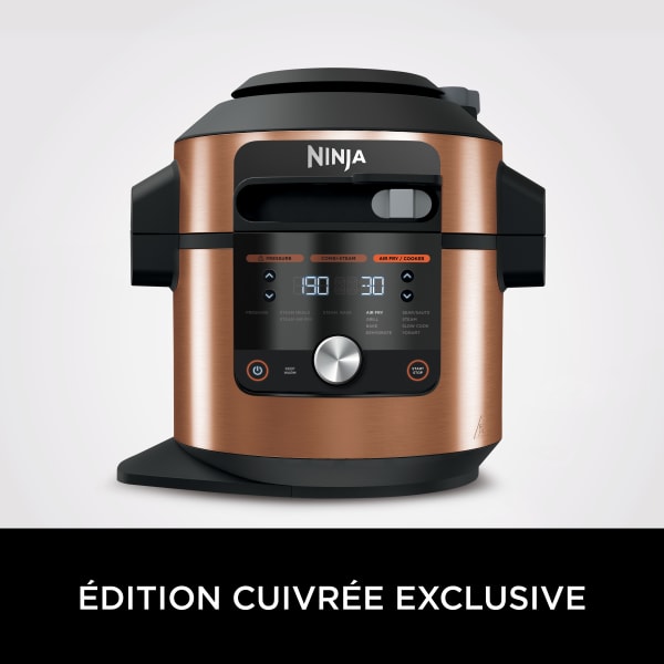Découvrez le Multicuiseur SmartLid 12-en-1 Ninja Foodi MAX. La nouvelle génération de multicuiseurs Ninja Foodi offre de nouvelles méthodes de cuisson inédites, comme le mode Combi-vapeur pour cuire à la vapeur et faire croustiller les plats en même temps ! Cuisinez de grandes quantités dans la cuve de 7,5L et régalez jusqu’à 8 personnes. ### 3 modes d’utilisation, 12 programmes de cuisson Accédez à 12 programmes de cuisson dans un seul appareil : cuire sous pression, frire sans huile, griller, cuire au four, déshydrater, saisir/faire sauter, cuire à la vapeur, mijoter, yaourt, repas vapeur, frire & vapeur et cuire au four & vapeur. Il vous suffit de faire glisser le curseur intelligent SmartLid sur le couvercle pour passer d’un mode d’utilisation à l’autre. Le couvercle reconnaît automatiquement quel programme vous utilisez. ### Mode Combi-vapeur Découvrez le mode de cuisson inédit Combi-vapeur qui associe la cuisson vapeur à la convection naturelle, pour cuire à la vapeur et faire croustiller les plats en même temps. La vapeur créée à partir des liquides ajoutés à la cuve de cuisson (eau, bouillon, vin…) apportera du moelleux et de la saveur aux aliments lors de la cuisson. Le résultat ? Des aliments parfaitement cuits, tendres et juteux à l’intérieur, et croustillants à l’extérieur. Préparez des repas complets en moins de 30 minutes grâce au programme Repas vapeur en déposant le plat et son accompagnement sur la grille à deux niveaux. Utilisez le programme Frire & Vapeur pour préparer des légumes croquants et cuisiner des aliments frais ou surgelés, comme des filets de saumon sans les dessécher. Ce programme est également idéal pour préparer des lasagnes parfaitement moelleuses et gratinées en un rien de temps ! Le programme Cuire au four & Vapeur permet de cuire rapidement de délicieux gâteaux, brioches moelleuses et bien d’autres desserts. ### Mode autocuiseur La cuisson sous pression permet de cuire jusqu’à 70% plus rapidement que les méthodes traditionnelles*. Ce mode est idéal pour attendrir de gros morceaux de viande, comme une poitrine de bœuf ou du porc effiloché, en seulement quelques instants. ### Mode Friteuse/Cuiseur Faites dorer et croustiller vos aliments avec jusqu’à 75% de matières grasses en moins que les méthodes de friture traditionnelles**. Idéal pour faire des frites bien croustillantes, des poissons panés ou des légumes croquants. ### Simple d’utilisation, facile à nettoyer Inclut une cuve de cuisson antiadhésive de 7,5L, un panier Crousti de 4,7L et une grille réversible à 2 niveaux. Tous les accessoires sont lavables au lave-vaisselle.