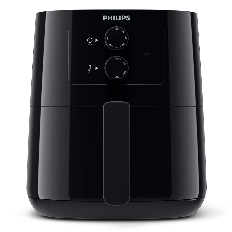 Friteuse Philips Essential Airfryer 4.1L avec technologie Rapid Air, croustillante à l'extérieur, tendre à l'intérieur, et jusqu'à 90% de graisse en moins.